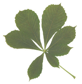 Leaves are fan (palmately) compound