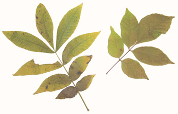 Trees with broad, compound leaves that are opposite of each other along the stem.